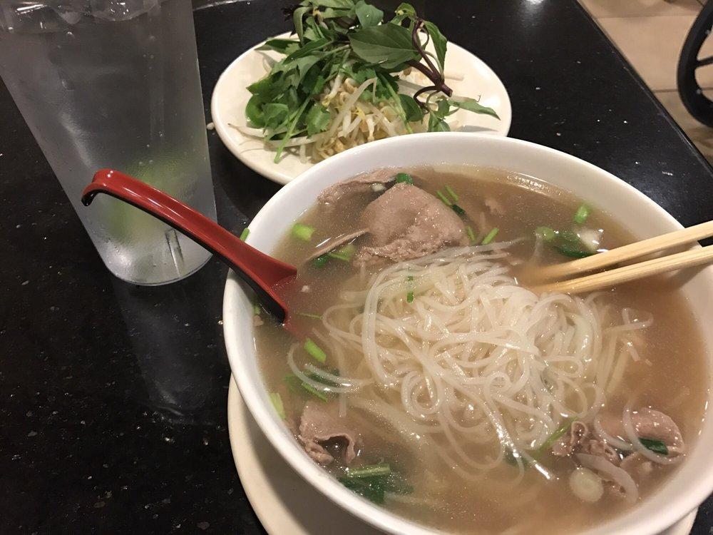 BEST pho I have ever had. The broth is beyond amazing. I ordered the super bowl (could possibly be a half gallon in size) it is huge. I had no idea. They brought out the normal plate with sprouts, jalapeno and basil. I asked for more...they brought more. No worries. No attitude. Good service. I have eaten here twice. Great experience both times. This would definitely be in my stable of everyday eateries but I live about 25 miles away. By the way the super bowl is $8 and change. No way can you eat it all but It makes for great leftovers at the house. Win win. Don't pass up this place. The place makes my mouth water just thinking about it.